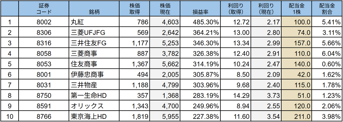 新たに増えましたので、今年の2月にまとめた取得平均の利回りベスト10の